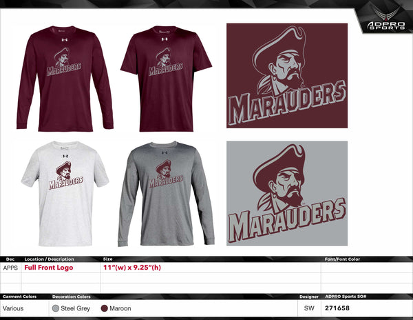 Nike or Under Armour Short Sleeve Dri Fit Shirt -GREY or MAROON with Marauder Head/"Marauders"