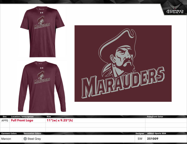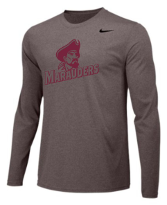 Nike or Under Armour Athletic Cut Long Sleeve Dri Fit T-Shirt "MARAUDERS/HEAD" - GREY or MAROON